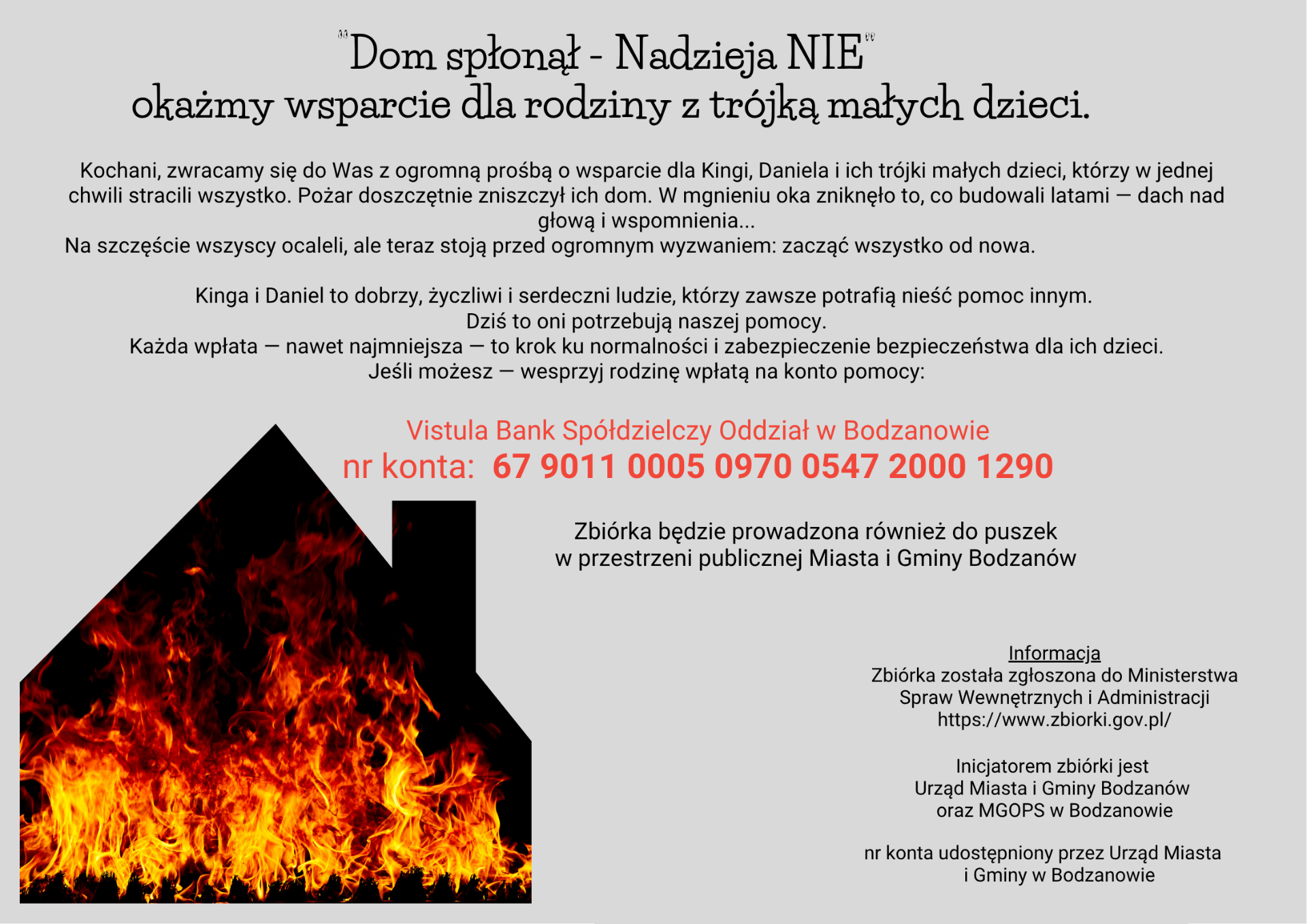 "Dom spłonął- Nadzieja NIE" okażmy wparcie dla rodziny z trójką małych dzieci.