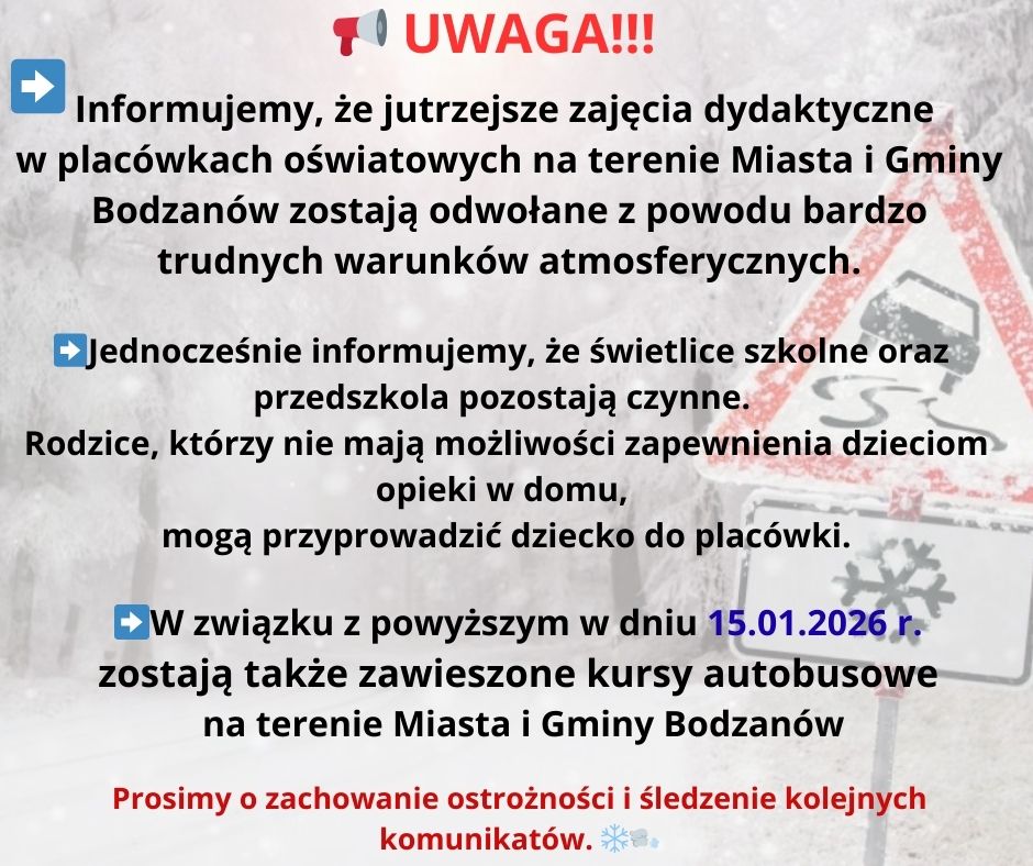 Uwaga!!! Odwołanie zajęć