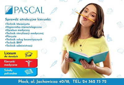 Szkoła Pascal w Płocku wychodzi naprzeciw potrzebom na rynku pracy i oferuje zdobycie nowego zawodu, uzupełnienie wykształcenia, rozwijanie swoich pasji i talentów. Do szkoły może zapisać się każda pełnoletnia osoba, bez względu na swój wiek, jedyny wymóg to posiadanie wykształcenia średniego – nie jest wymagana matura. Zajęcia odbywają się w weekendy i prowadzone są w interesujący i przystępny sposób.