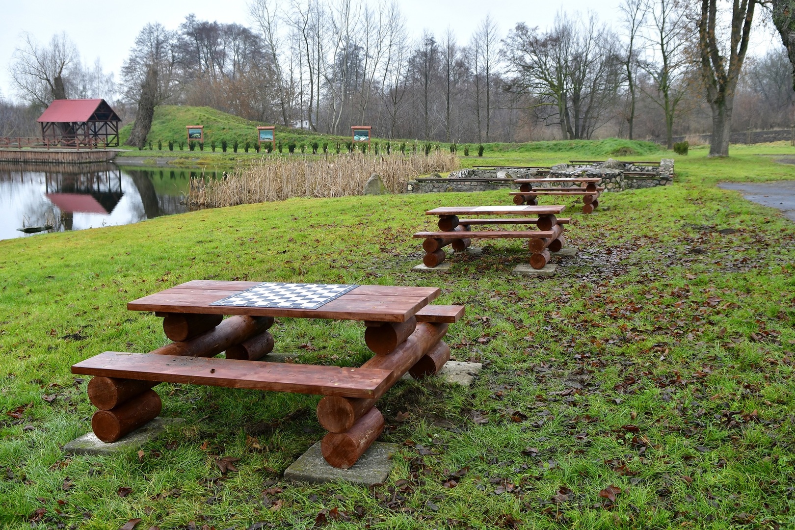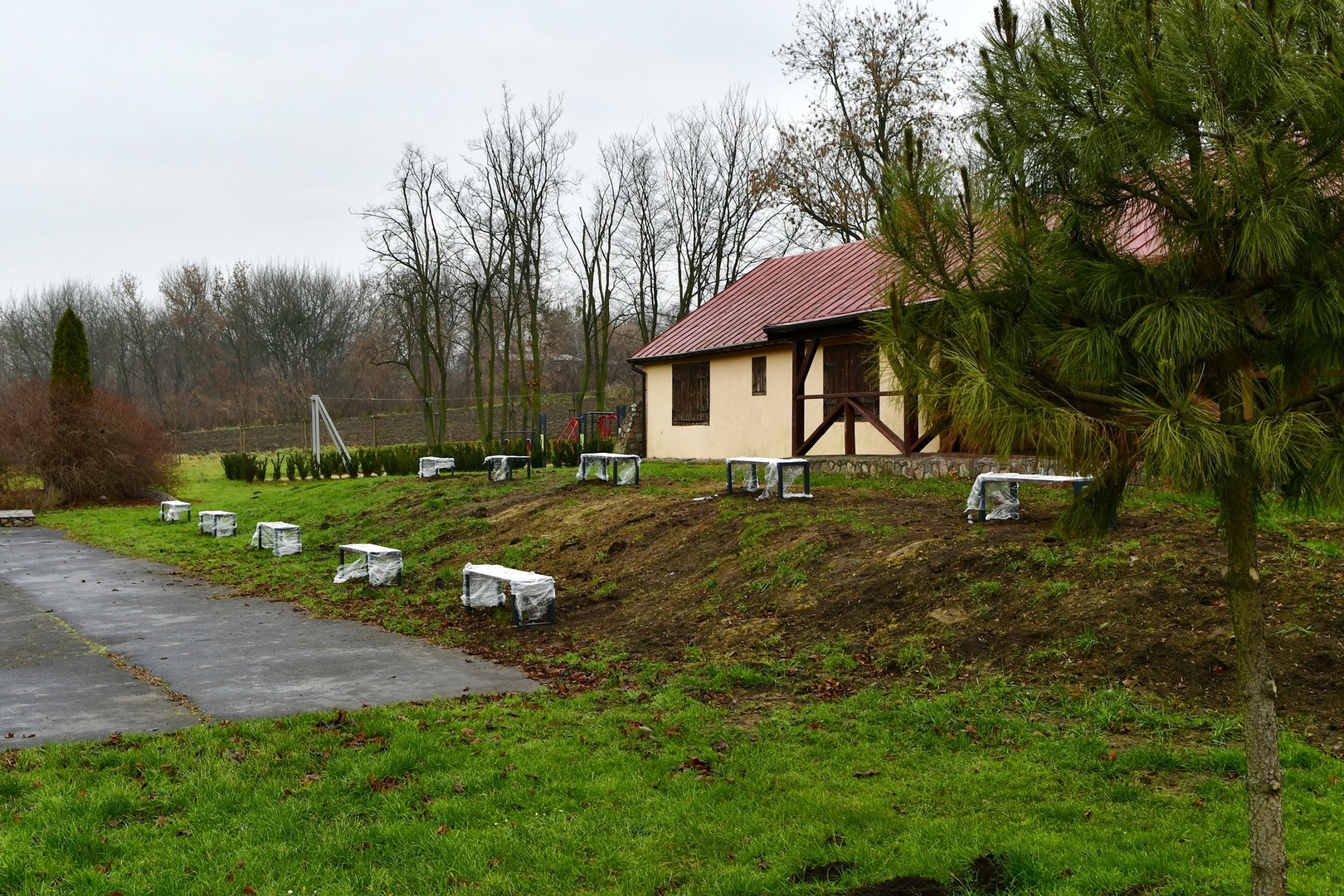 Park przy Urzędzie Gminy pięknieje, po nasadzeniach zieleni i wykonaniu nowych alejek oraz siłowni zewnętrznej z placem zabaw przyszedł czas na kolejne inwestycje. Tym razem jest to