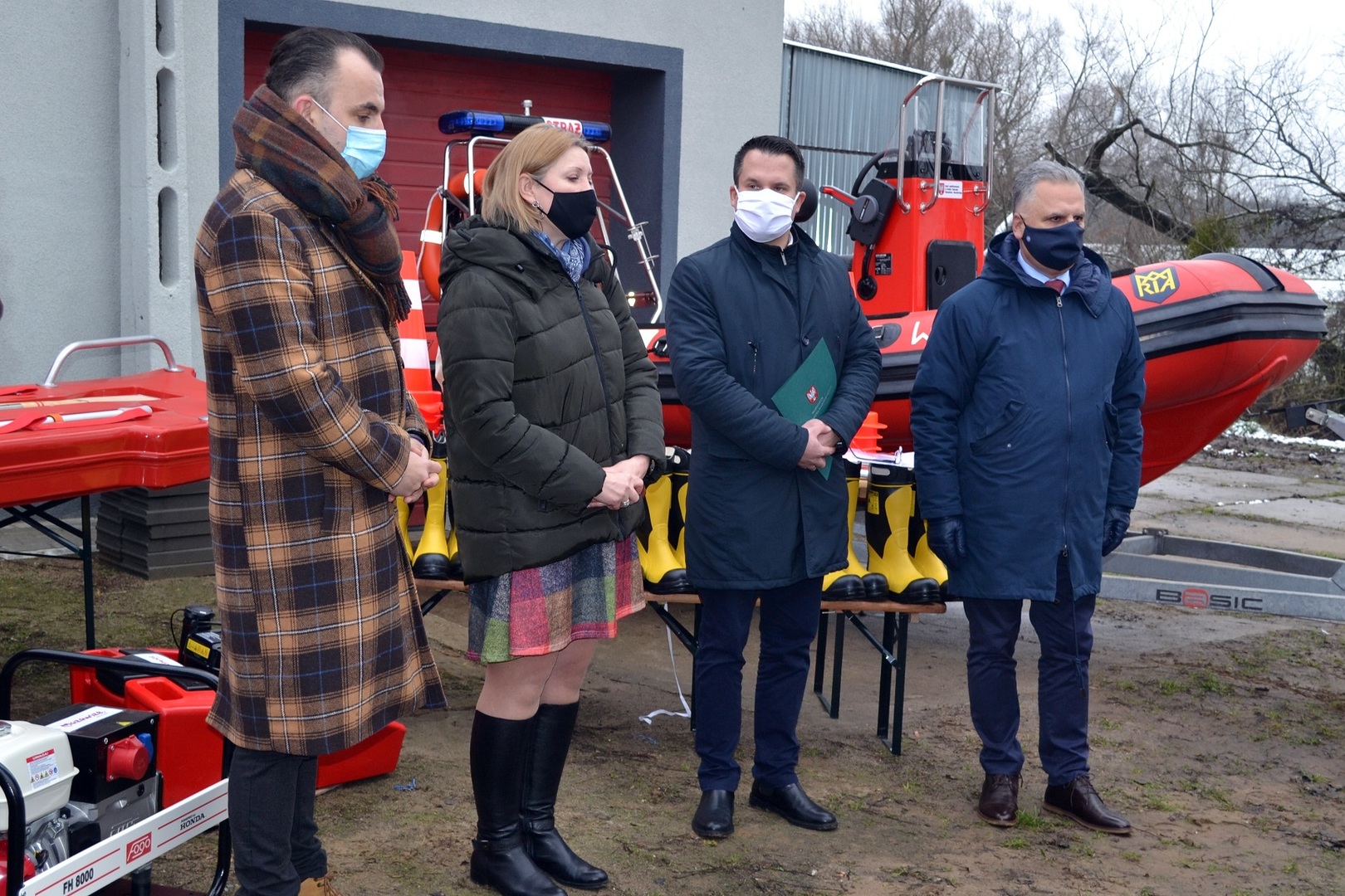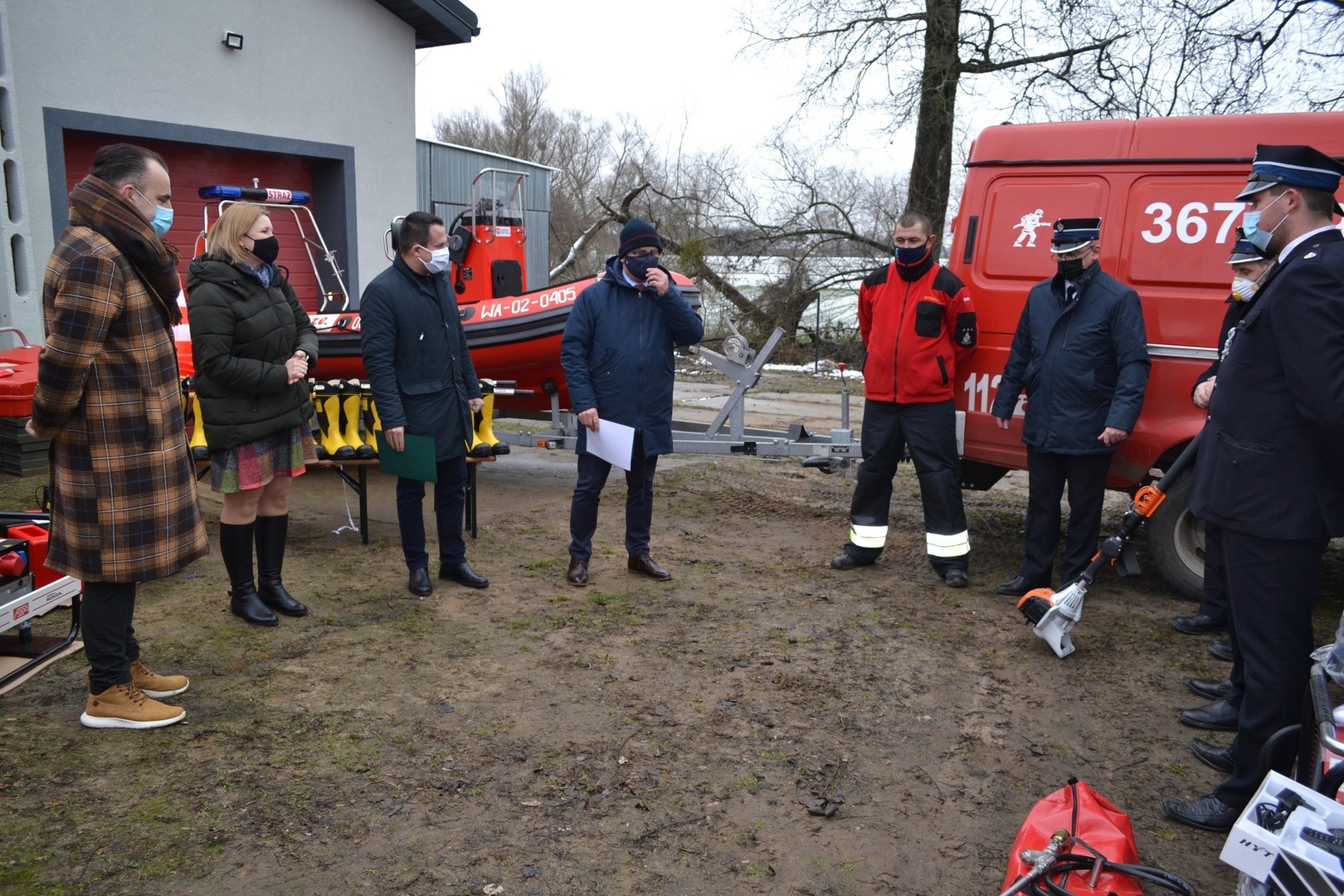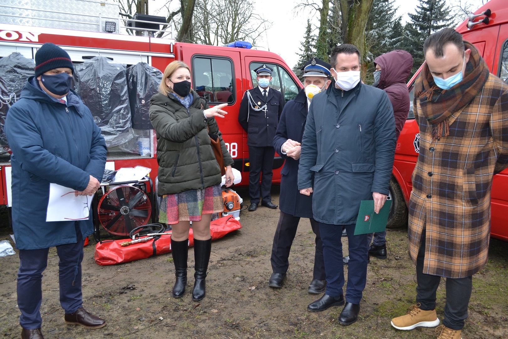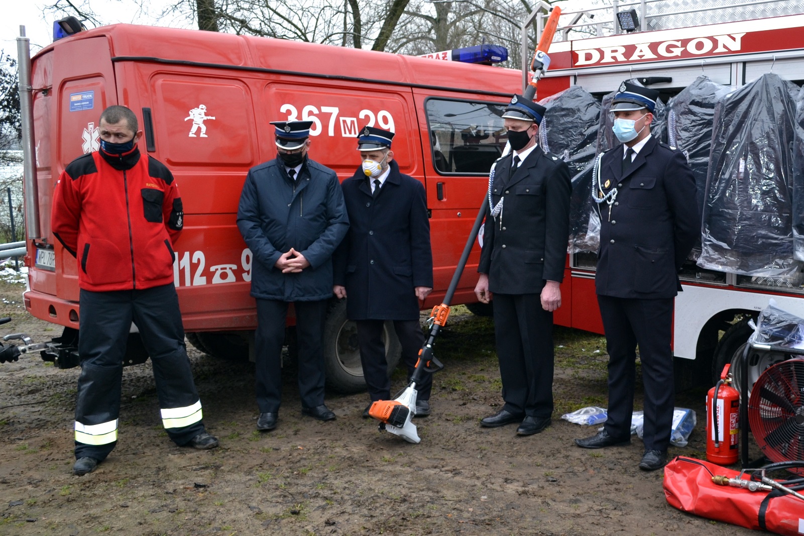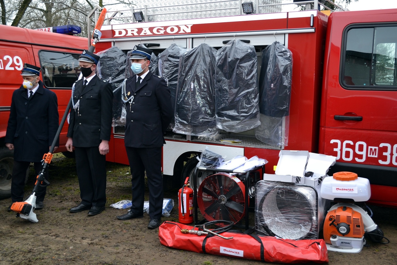 8 stycznia br., dzięki pomocy finansowej Urzędu Marszałkowskiego Województwa Mazowieckiego, otrzymaliśmy z rąk pana Adama Orlińskiego, pana Tomasza Kominka i pani Joanny Sokołowskiej umundurowanie oraz sprzęt specjalistyczny dla jednostek OSP Bodzanów i OSP Kępa Polska. Całkowity koszt wyposażenia wyniósł 64 900 zł.